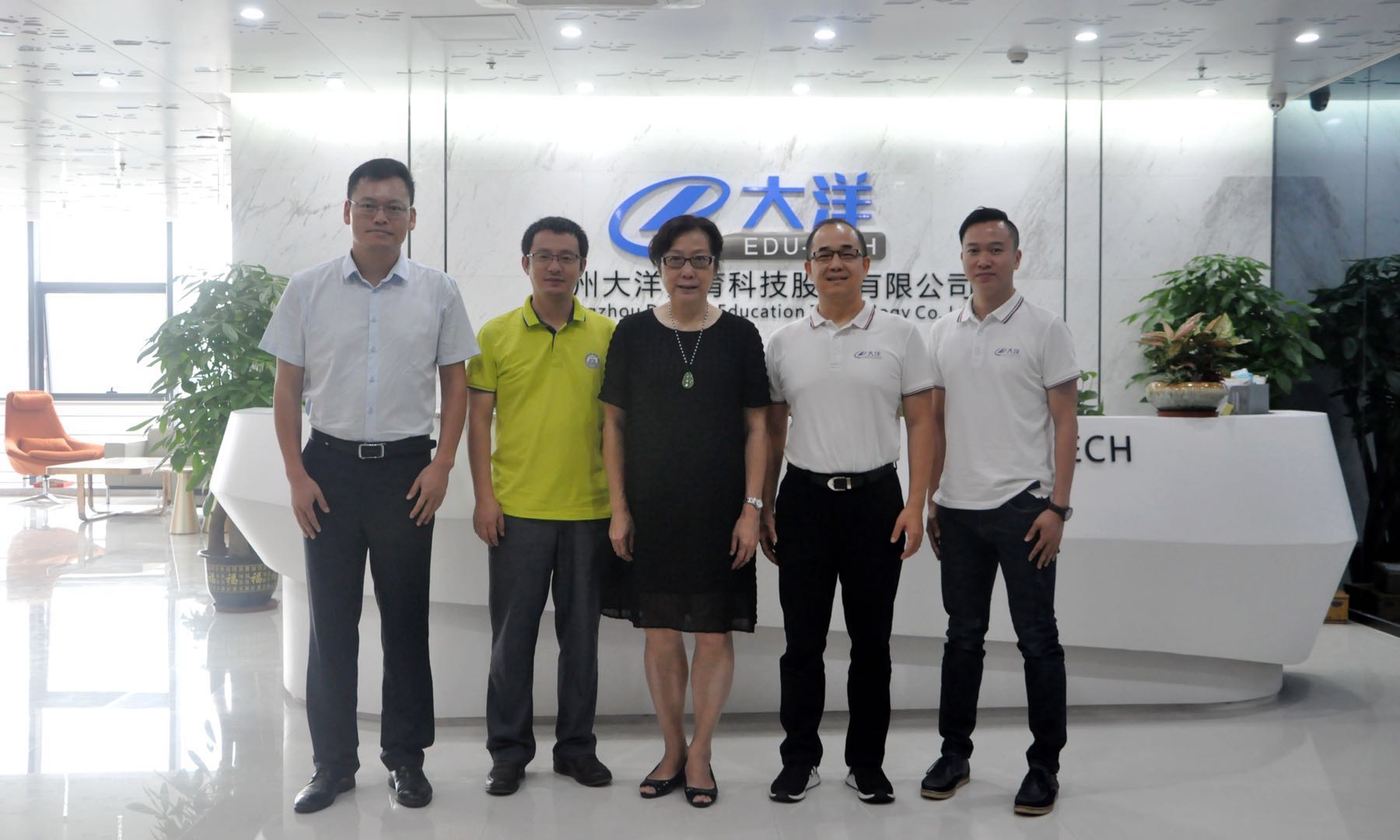 为进一步培养高素质应用型跨境电商本科人才、加深校企合作、落实协同育人联合培养模式,2018年7月30日上午9:30,广州商学院外国语学院马蔚兰院长、袁鑫、郭航副院长一行到广州大洋教育科技股份有限公司总部进行洽谈,细化并完善开办跨境电商创业班相关保障条款。广州大洋教育科技股份有限公司周春翔董事长、杨华智总监热情接待了马蔚兰院长一行。