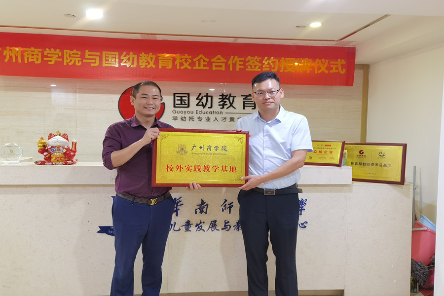 广州国幼教育科技有限公司是一家从事早教人才培养的专门机构,黄德生带领大家参观公司环境、介绍公司的发展历程,并展示了公司研发的早教产品及托育培训体系等。黄德生表示目前我国早教托育行业市场人才需求量大,外国语学院英语专业本科学生在这一行业具有很强的优势,希望通过建立校企合作关系,深入参与学生实习、专业建设、共建课程等方式开展产学研合作,培养适合行业发展的人才。郭航表示欢迎企业到校内建立实训基地,将技能培训等课程融入课程教学,让学生提前掌握职业技能,为实习上岗奠定坚实的基础。最后郭航代表学校向企业授予“广州商学院校外实践教学基地”牌匾。