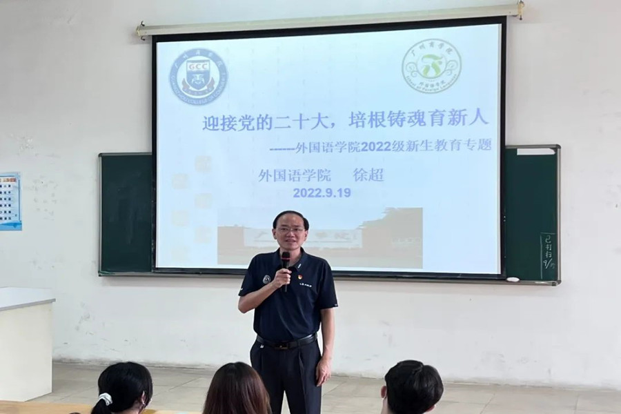 课堂上,徐超从“礼”出发,他强调人无礼则不生,事无礼则不成,国无礼则不守。全体新生应学会注意礼节礼仪,尊重老师与同学,从“新”出发,以“礼”待人,并提出新生在未来四年应学会求知、合作、做事与做人。其次,他强调了教育的重要性,依次讲述了广州商学院发展的历史沿革、发展历程以及办学条件,并详细讲解外国语学院现有专业包括英语、商业英语、日语、德语及西班牙语专业的学习方向,就业前景及未来发展机遇。徐超提出了学院的人才培养目标,阐述学院为建设优良学风而提出的规章制度,进一步讲述学风建设的重要意义,同时他希望学生能够打好学习基础,为未来参加学科竞赛、考取证书及撰写论文等做充分准备。