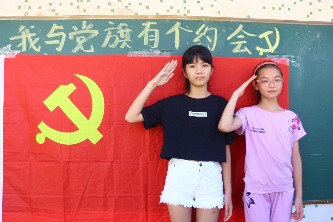 火红之夏,伴随着共和国前进的步伐,在建党96周年之际,为喜迎建党96周年,让少先队员更深入地了解党、了解党旗,激发新一代少年知党、爱党的热情。7月15日,外国语学院阳光展翅实践团在梅州市蕉岭县新铺中心小学开展了“我与党旗有个约会”的主题活动。