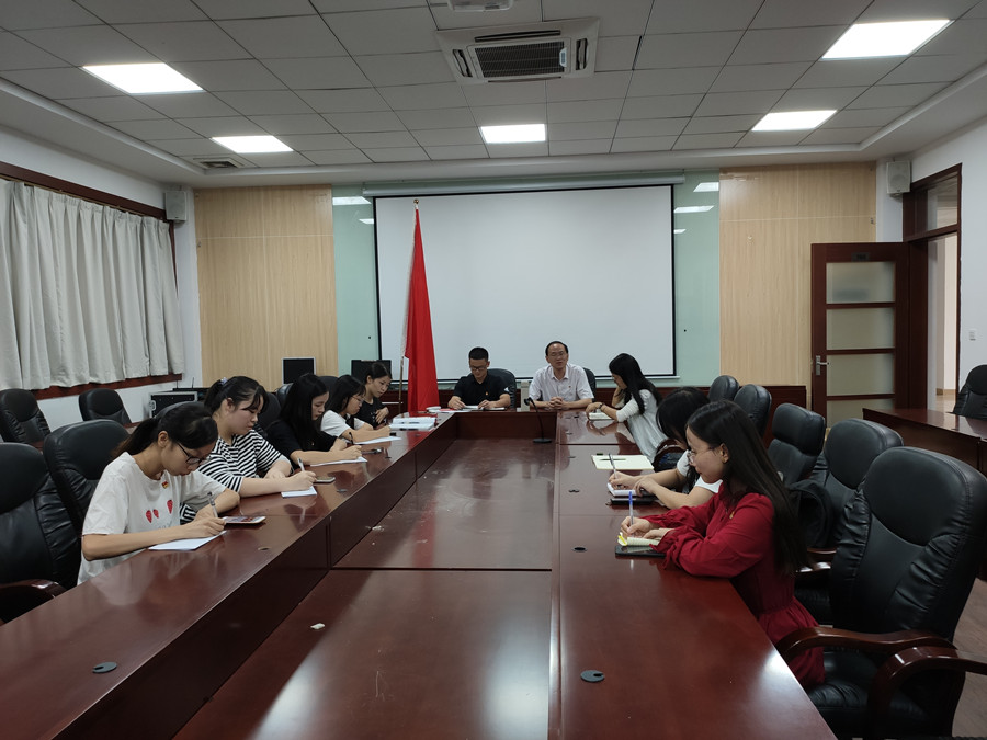 为进一步贯彻落实“不忘初心,牢记使命”主题教育工作,外国语学院2017级学生党支部于10月22日中午在第二行政楼308会议室召开了专题教育以及工作会议,学院党总支书记徐超、17级辅导员黄士库和郑灿玲共同出席了会议。会议由黄士库主持。