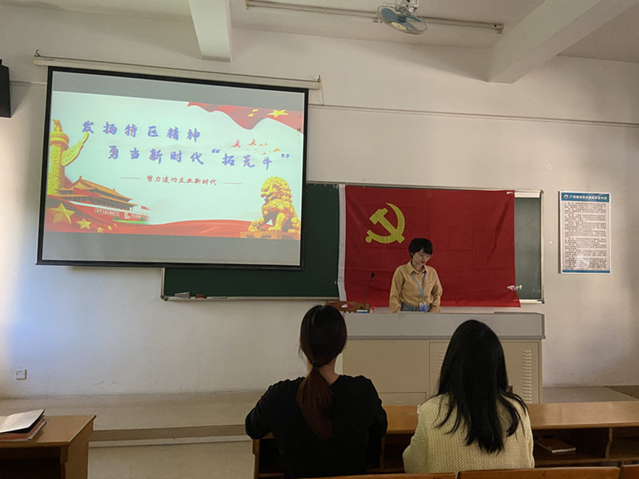 为深入学习、准确把握习近平总书记出席深圳经济特区建立40周年庆祝大会和视察广东重要讲话、重要指示精神的重大意义和丰富内涵,外国语学院19级学生党支部于11月26日在第四教学楼302开展以《发扬特区精神,勇当“拓荒牛”》的学习研讨会。此次学习活动由19级学生党支部书记谢清玲主讲,19级学生党支部全体党员参与学习。