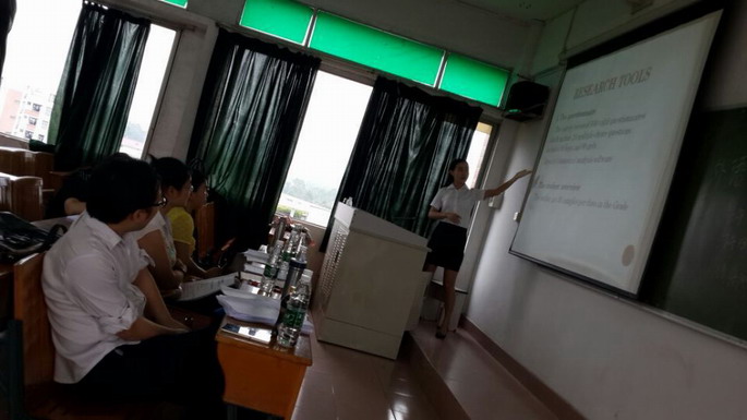 上午8:30分,论文答辩正式开始。答辩过程中,学生全部身着正装,首先使用PPT进行论文陈述,然后回答答辩老师的提问。答辩老师对每一位学生的论文进行点评,对其中存在的问题给出了修改建议,并根据学生的表现给出了相应的答辩成绩。整个论文答辩工作进行到下午5点30分才全部完成,部分答辩小组由于参加人数较多,还牺牲了中午午休时间。
