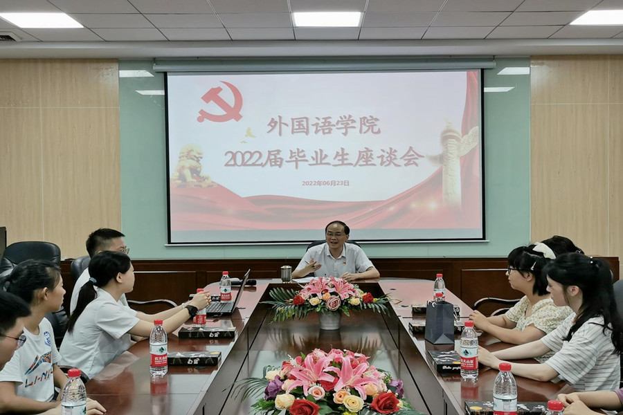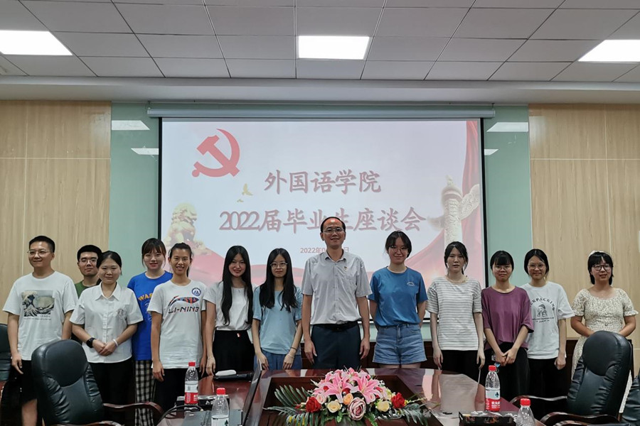 6月23日晚,外国语学院在第二行政楼308会议室召开了主题为“风雨同舟,自强不息”的2022届毕业生座谈会,会议由学院党总支书记徐超主持,12名毕业生代表参加了座谈会。