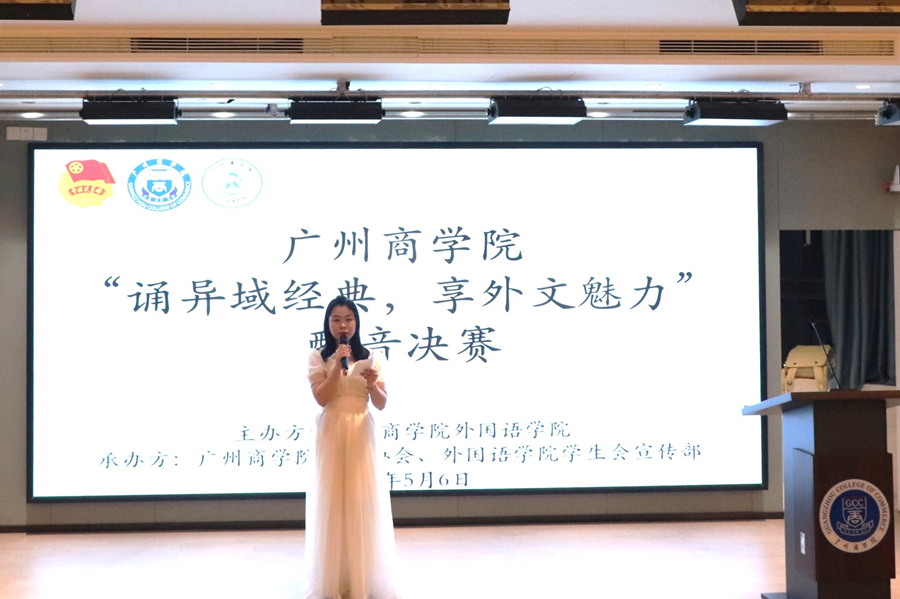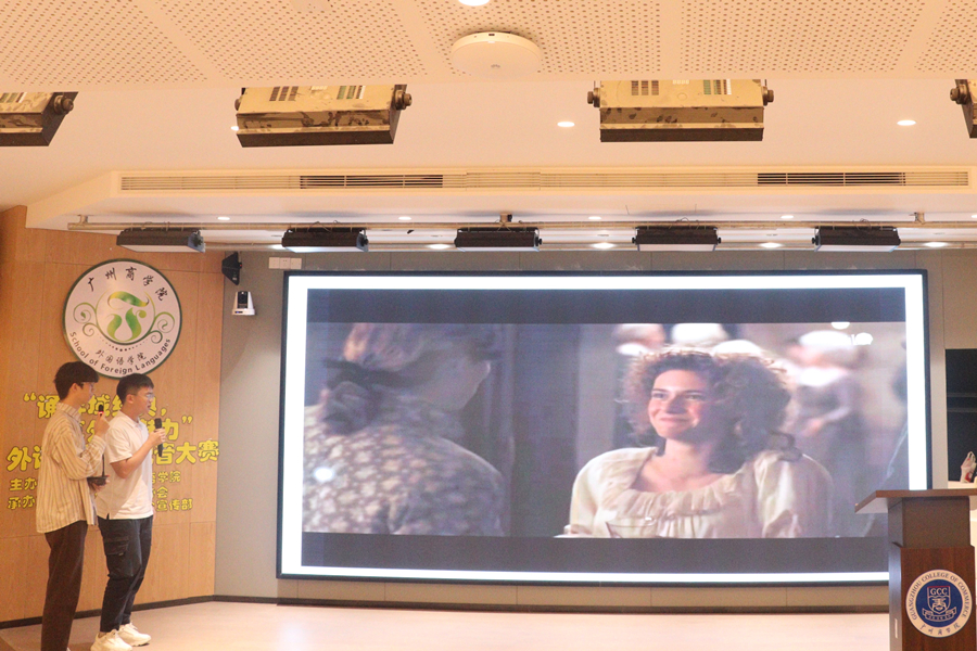 为了更好地活跃校园文化氛围,挖掘我校人才深层潜力,促使大学生提高语言应用能力,给热爱外语配音的同学们提供一个交流的平台,广州商学院德语协会于5月6日19时在第八教学楼203举行外语多语种配音大赛决赛。莅临本次比赛的嘉宾有外国语学院党总支书记徐超、23级英语专业辅导员蔡柳渊、商务英语系专任教师朱渺、西班牙语系专任教师揭艺涵、日语系专任教师郝嘉凯、德语系专任教师刘佳芮。