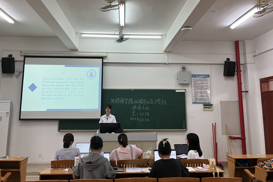 外国语学院2023届毕业论文答辩于5月7日在广州商学院第四教学楼顺利展开。参加本次论文答辩的是2019级本科英语、商务英语、德语、日语四个专业共922名学生,共132位教师参与本次答辩工作。外国语学院副院长袁鑫、党总支书记徐超赴毕业答辩现场进行巡视和指导。