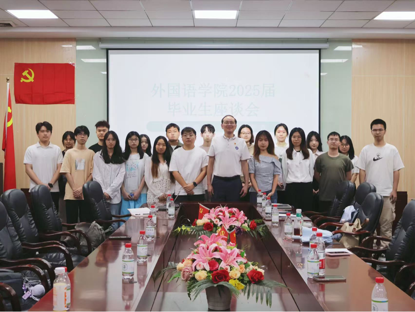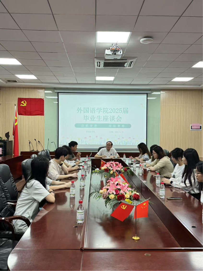 6月18日上午,外国语学院于第二行政楼308会议室召开2025届毕业生座谈会。此次座谈会由外国语学院党总支书记徐超主持,2025届各班班级毕业生代表出席。