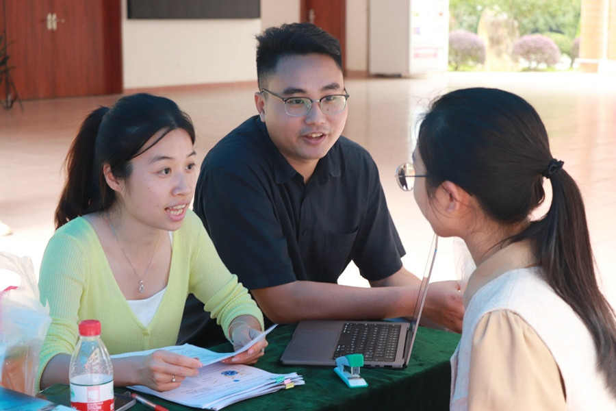 毕业生们以及有实习需求的同学们身着正式服装、携带个人简介踏进了招聘会的现场,从容地回答面试官的问题,展现广商学子的风采。外国语学院工作人员做好前期准备,协助面试官相关工作,维持现场秩序,传递着外院人的热情。
